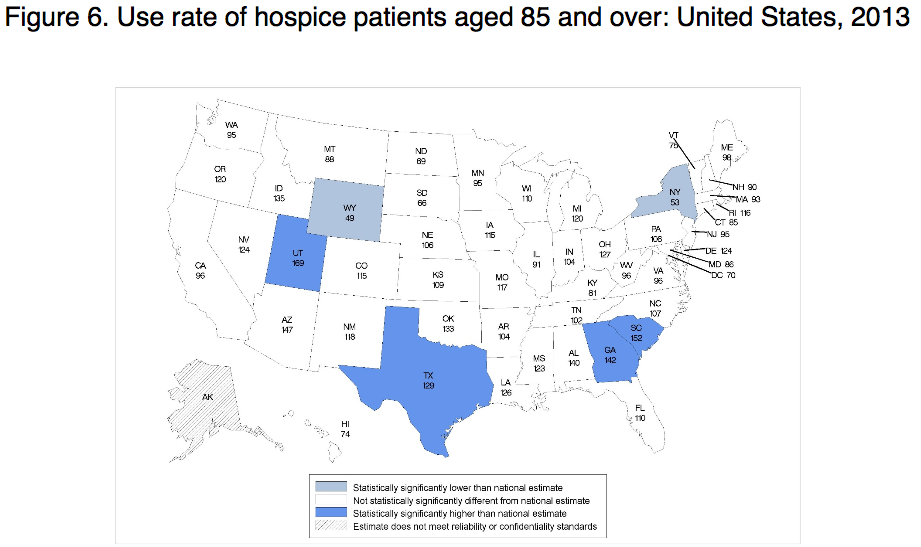 Texas, Utah, Georgia and South Carolina boast high hospice use-rates for patients 85 years and older.